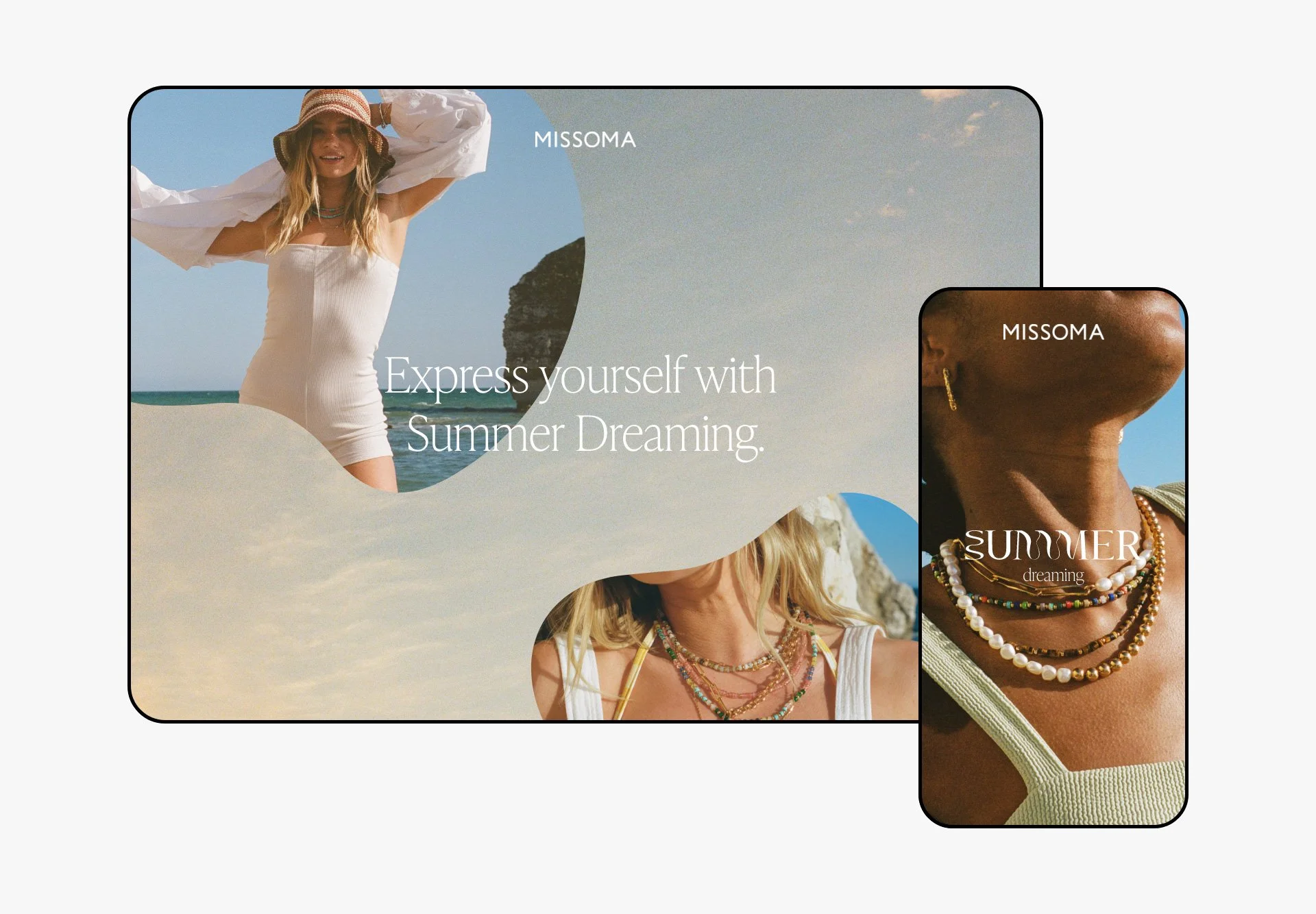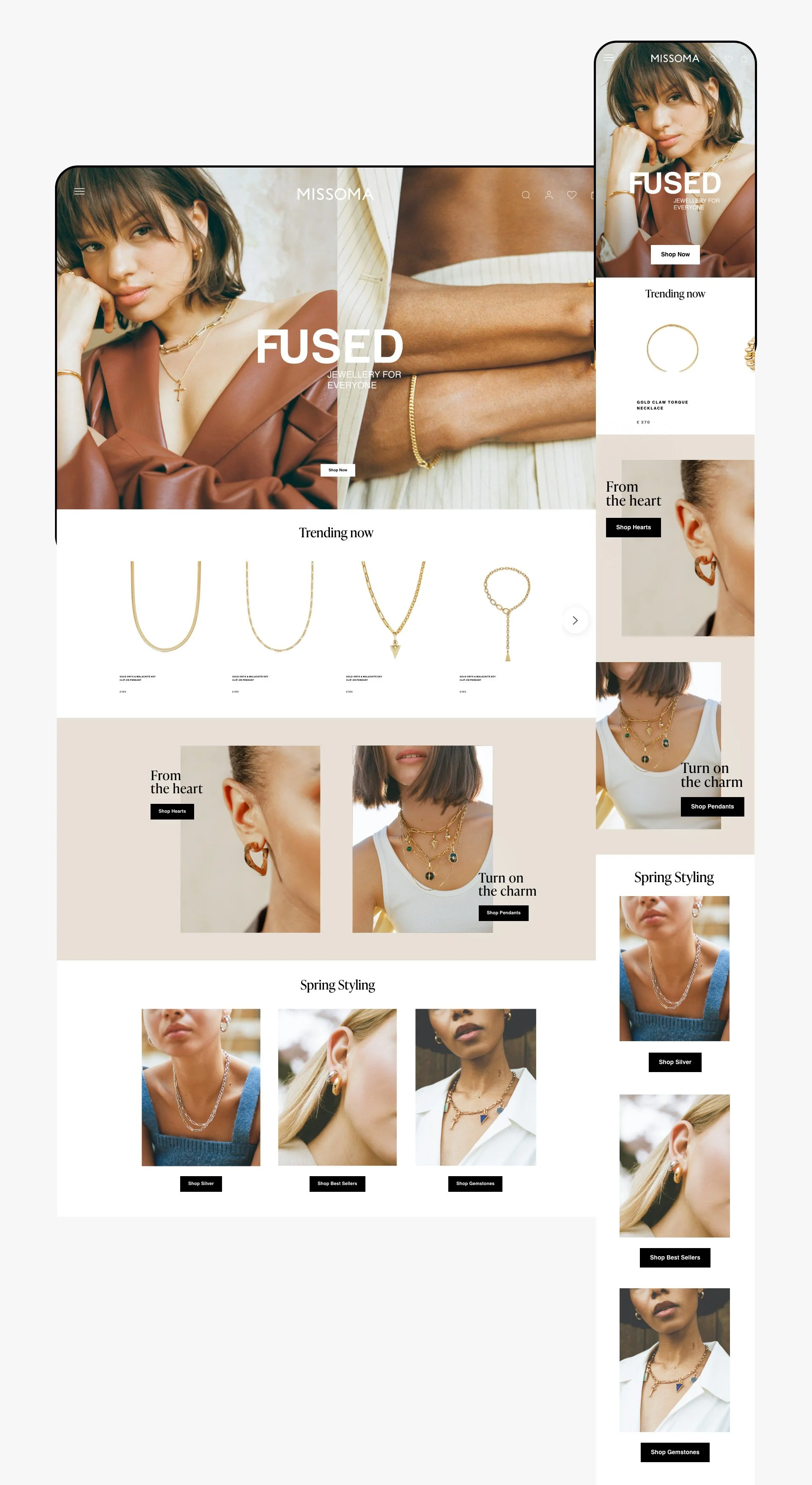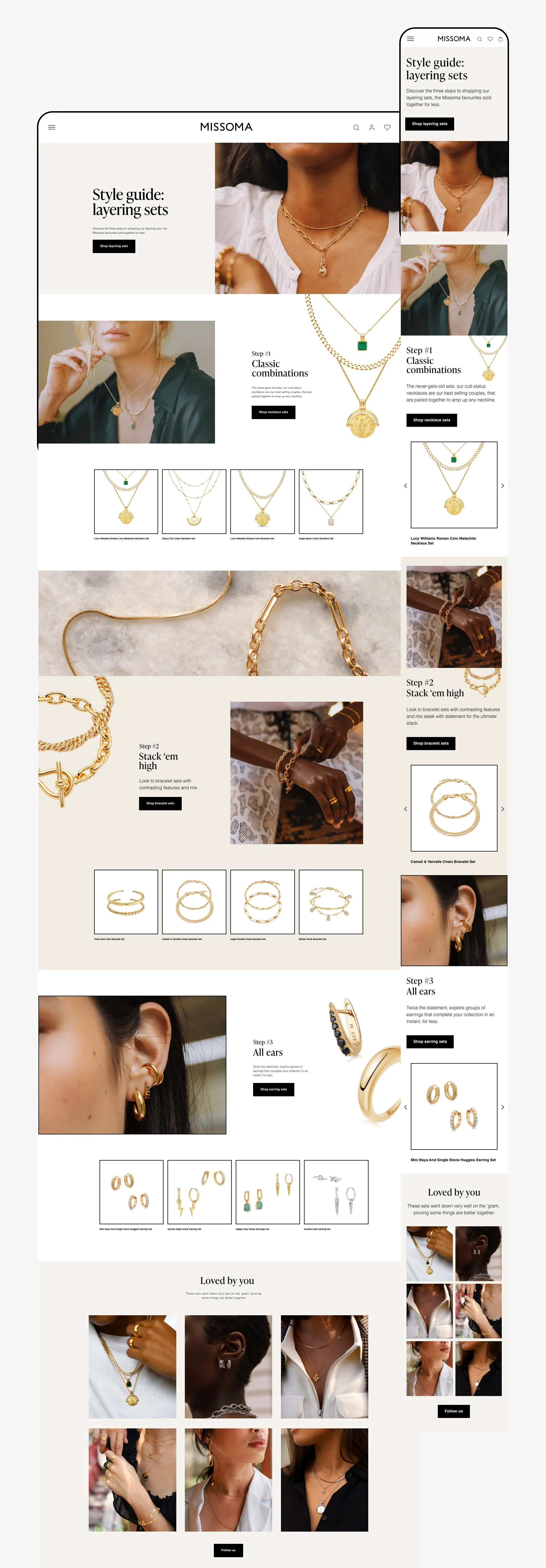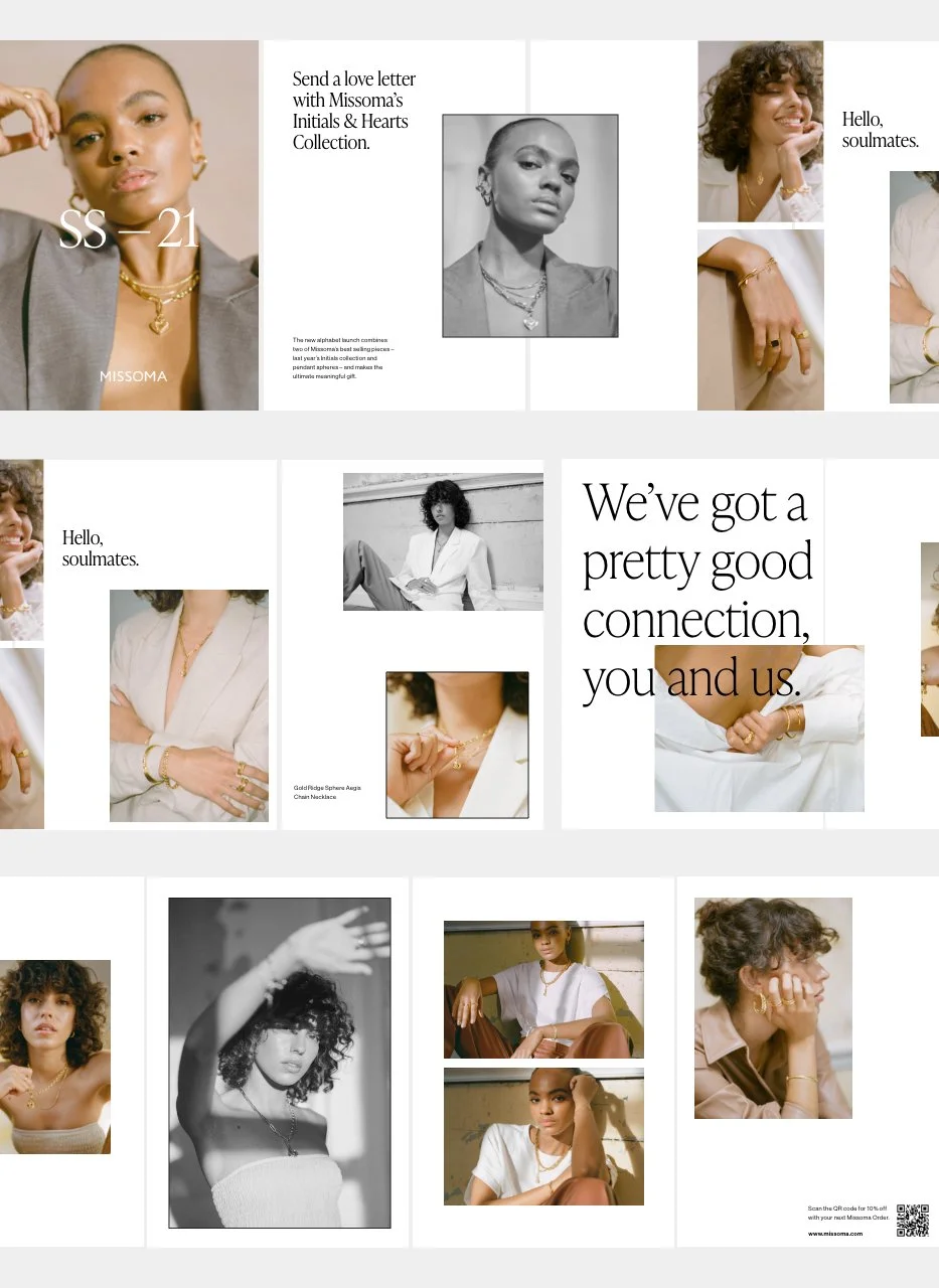 As part of Missoma's global marketing team, I designed and conceptualised new ideas for digital campaigns, multi-channel content, and brand creative. My responsibilities included website updates, designing landing pages, providing art direction, and creating visual concepts for both online and offline channels.